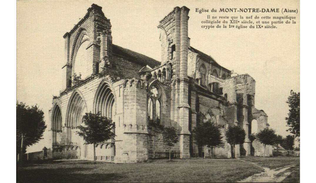 تصویر 2: کلیسای نتردام قرن 19م؛ نوشته‌ای بر روی تصویر وجود دارد که در آن اشاره شده از این کلیسای باشکوه قرن دوازدهمی، تنها بخش‌هایی از شبستان و سرداب اولیه باقی‌مانده است – مأخذ: (URL3).