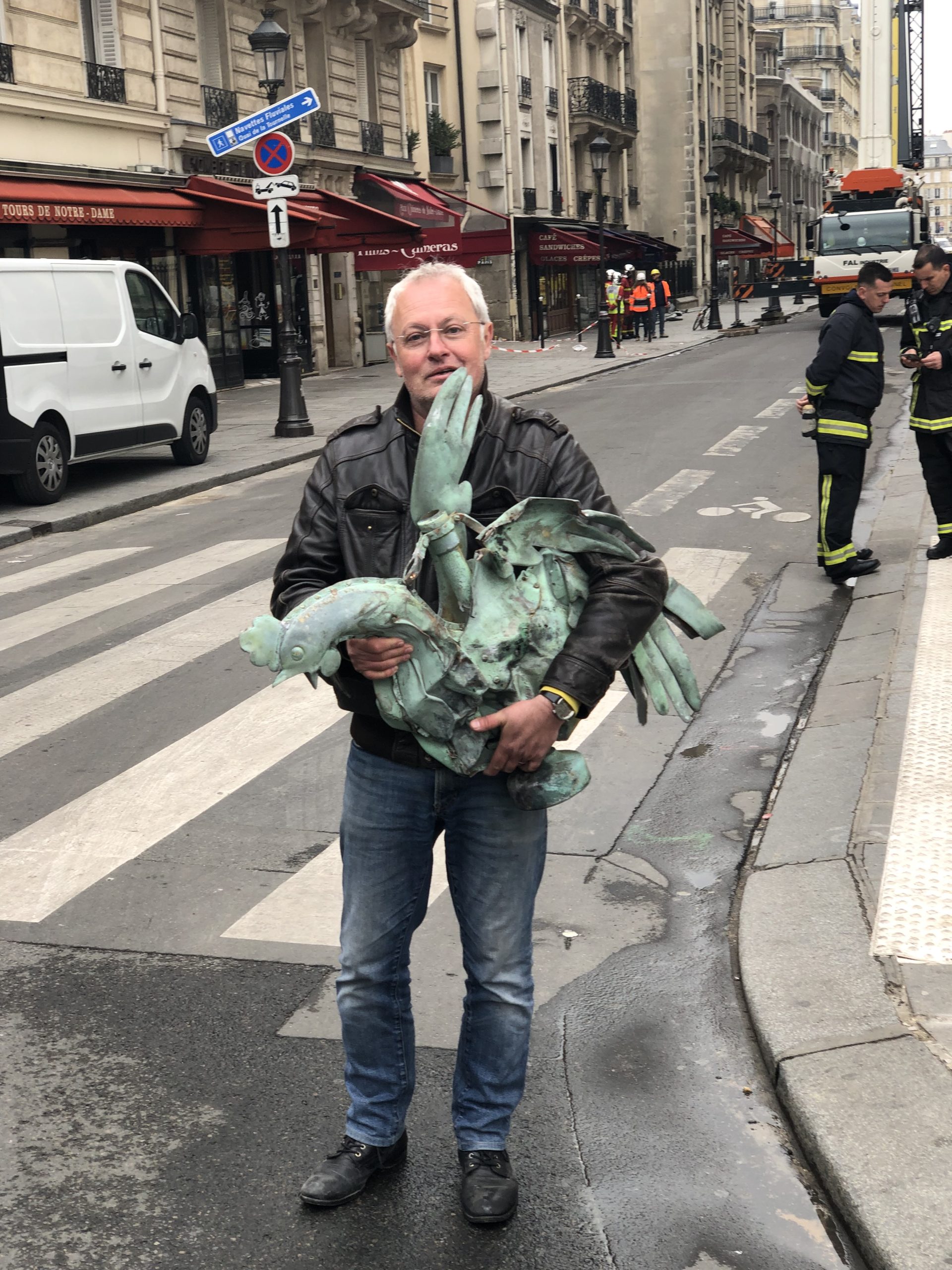 فیلیپ ویلنوو[7]، معمار ارشد پروژۀ بازسازی نتردام، در سخنرانی‌ای که در آپریل 2025 م در قالب TED TALKS[8] انجام داده است، عنوان می‌کند: «فردای آتش سوزی، هنگامی که وارد کلیسا شدم، سنگ‌های کلیسا را دیدم که آسیب دیده‌اند، آب درون بخش‌هایی از کلیسا نفوذ پیدا کرده بود، تکه‌های چوب سوخته همه‌جا ریخته بود، در آن روز من خروس ناقوس را سالم، زیر آوارها پیدا کردم. مانند معجزه‌ای بود که میان آن همه ویرانی سالم است، در همان زمان امیدی یافتم که نمی‌دانستم در من وجود دارد.»